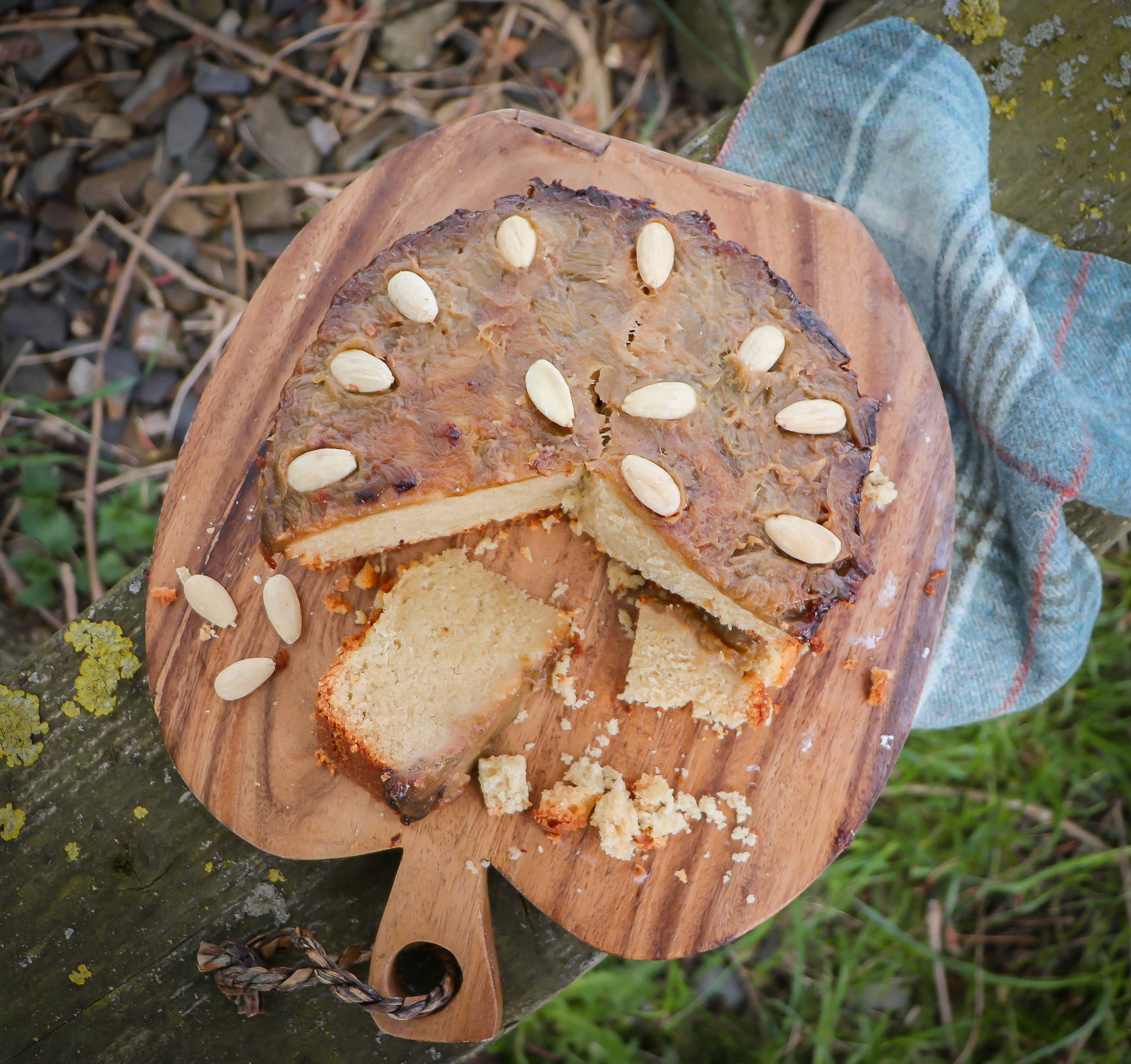 The upside down rhubarb and almond cake is dense enough to travel well. Perfect for popping in the picnic basket and arriving in one piece at its destination.