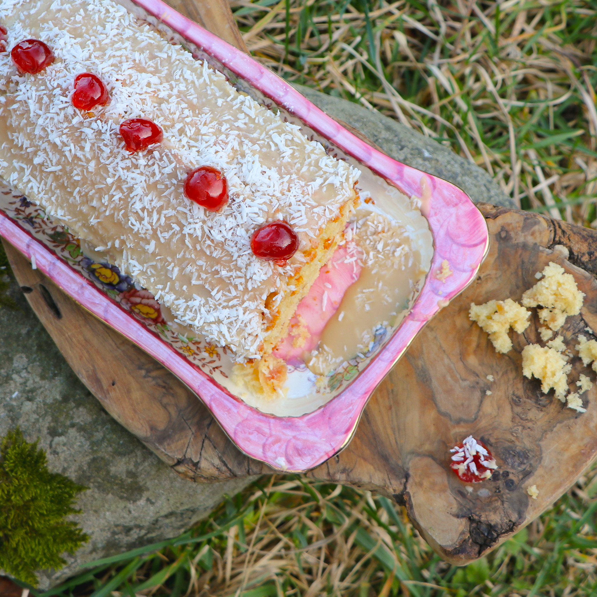 - If you want to try baking this in a square brownie tin you could make coconut slice cake bars. These would be lovely for the kids.